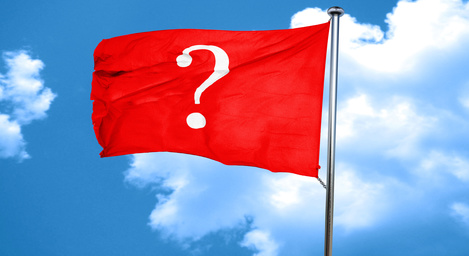 question mark, 3D rendering, a red waving flag