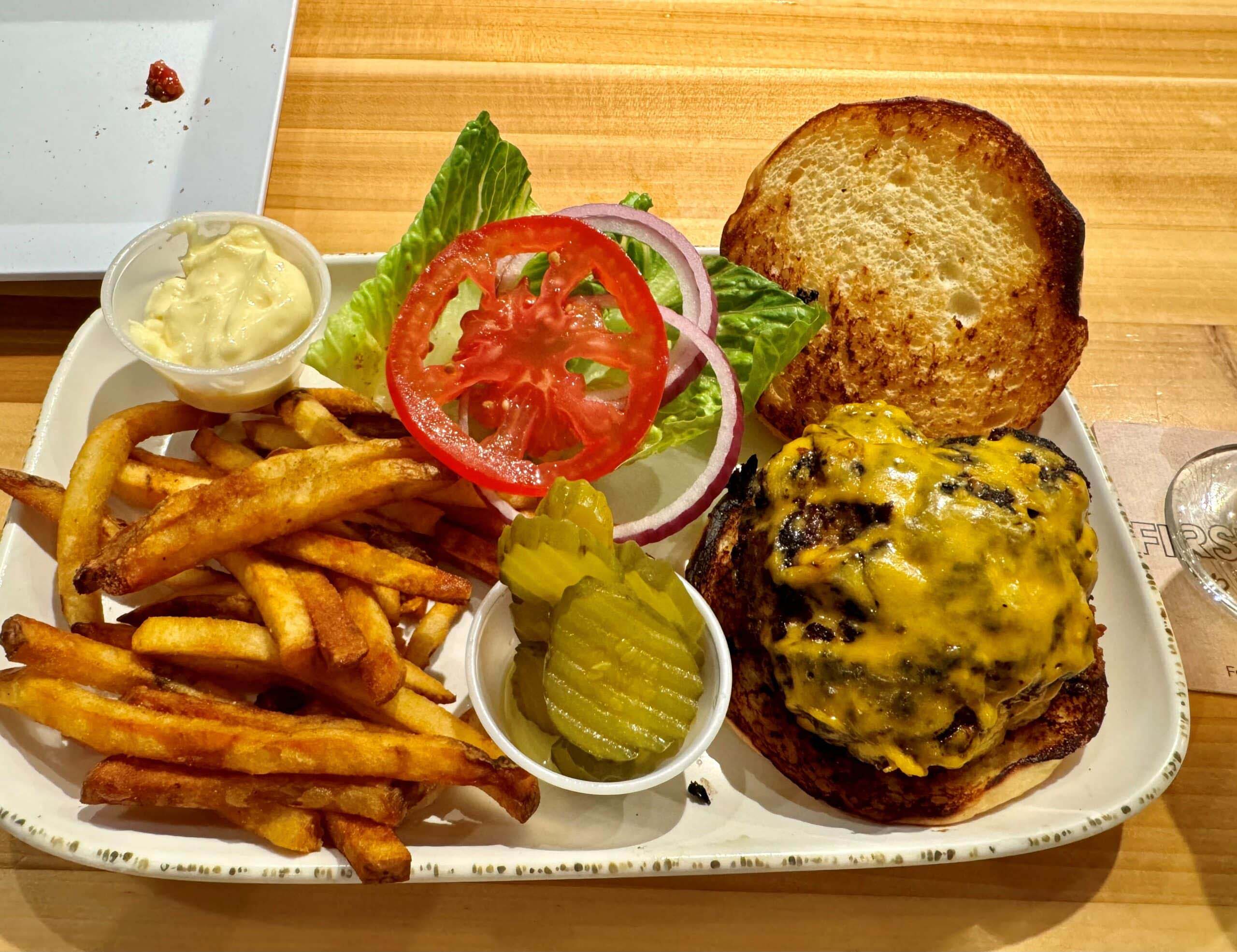 He raved on adding, “have you ever noticed a great cheeseburger, truly looks appealing? It’s a treat for the nose AND the eyes. Consider, dear reader, the $15 “smash burger” at First Love Brewing located on Ash street and South 8th. Perfectly toasted bun, golden brown, bright red tomato, Spanish onion ringlets the perfect purple hue, then, there’s the burger. Let’s take a moment here. Not one, but TWO crispy edged, BUT juicy patties. Both patties were smothered in melted American cheese. What can I say that Jimmy Buffett hasn’t sung about already? Let’s not forget the variety of freshly brewed beer! Truly a cheeseburger in Paradise!